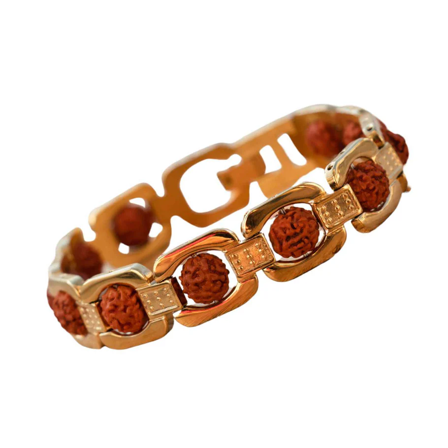 Genuine Paanch Mukhi Essential Rudraksha bracelet with Premium Gold plating.